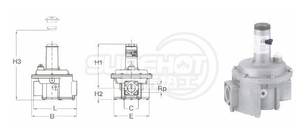 較大的輸入壓力1bar(100kpa,1公斤壓力);輸出壓力2.5-300mbar取決于可調(diào)的額定彈簧,彈簧可更換;螺紋接口;