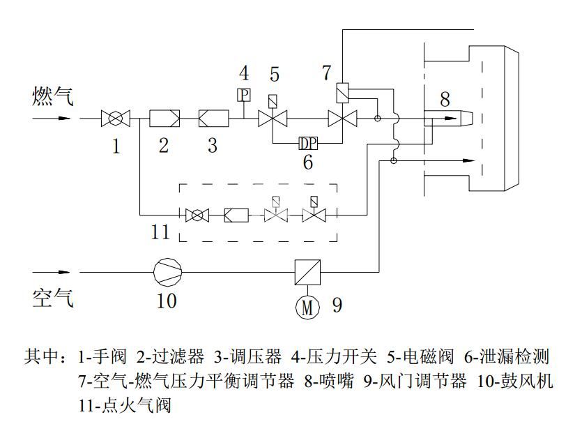 燃料系統的功能在于保證燃燒器燃燒所需的燃料。燃油燃燒器的燃料系統主要有:油管及接頭、油泵、電磁閥、噴嘴、重油預熱器。燃氣燃燒器主要有過濾器、調壓器、電磁閥組、點火電磁閥組。